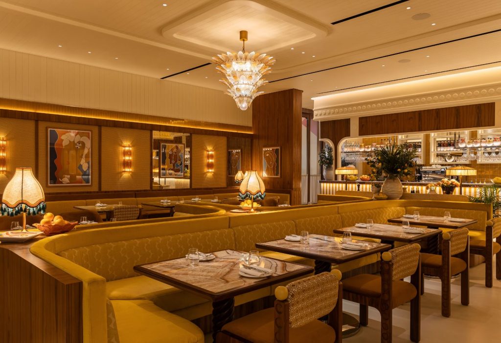 The space is designed by Melissa Collison to mirror the warmth and abundance of a beloved Italian trattoria. The design is a stage set for abundance: the pizza oven glows like a hearth, marble counters catch the light, colourful ceramics scatter charm across the space. The valet-side entrance is a see-and-be-seen moment, where planters, colour, and signage invite guests in. At lunch it is bright, buzzing, filled with the smell of bread just pulled from the oven. By night it glows warm, every table filled, laughter bouncing against tiled walls. It is a room that captures the spirit of Italy: not copied, not recreated, but translated into a beloved neighbourhood Italian where everyone feels welcome.
