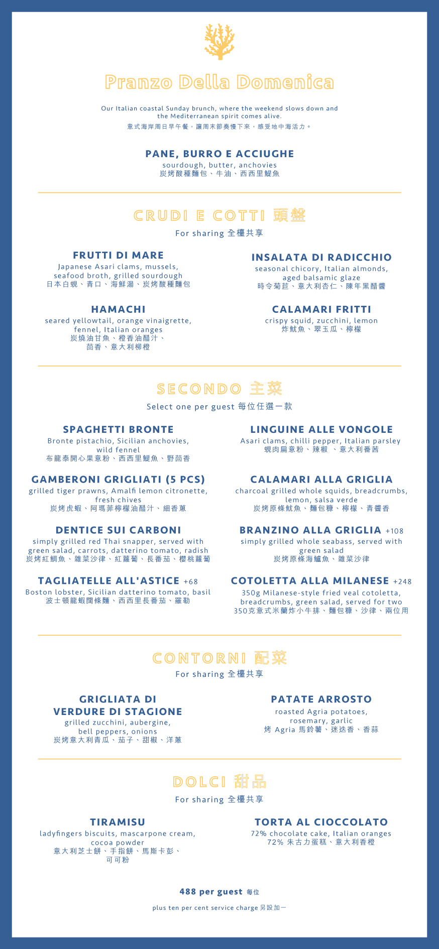 Our Italian coastal Sunday brunch, where the weekend slows down and the Mediterranean spirit comes alive.